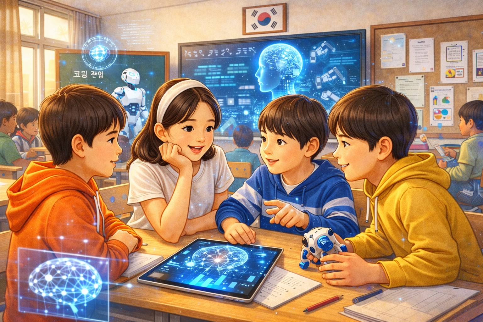 AI에 대해 궁금해하는 아이들